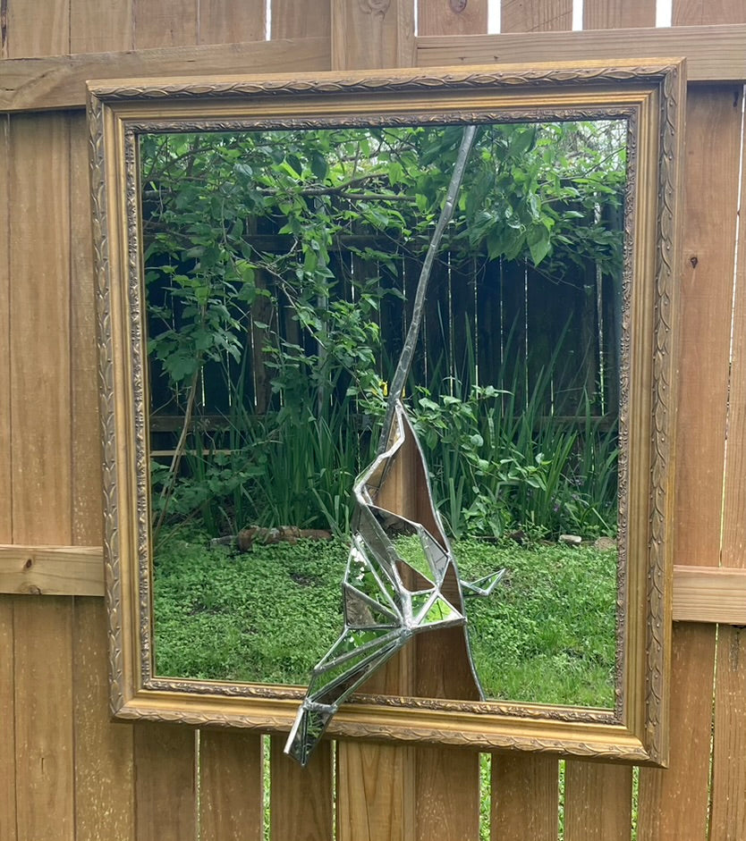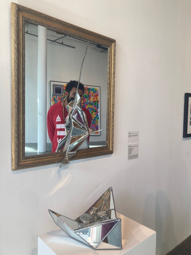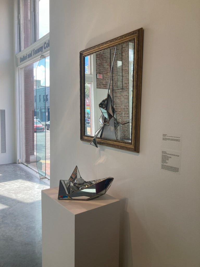 Glass and metal sculpture: mirror, 60/40 solder, copper foil, wooden frame