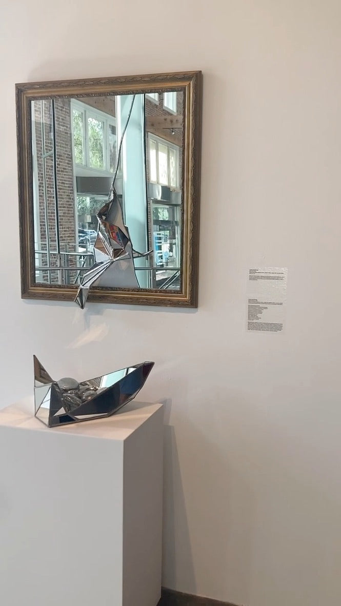 Through repetition and time I have shifted from thinking of mirror as a consideration of self to an imperative to consider the collective. The gaps between how we see ourselves, how we think others see us, and how we are perceived by others is fluid. When the object is society as a whole, these gaps create profound collective dis-ease.“Dis-ease” allow us to reflect upon who the collective is, what it wants to be, and what it needs to believe to become that self.