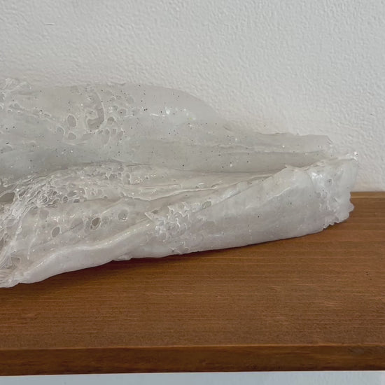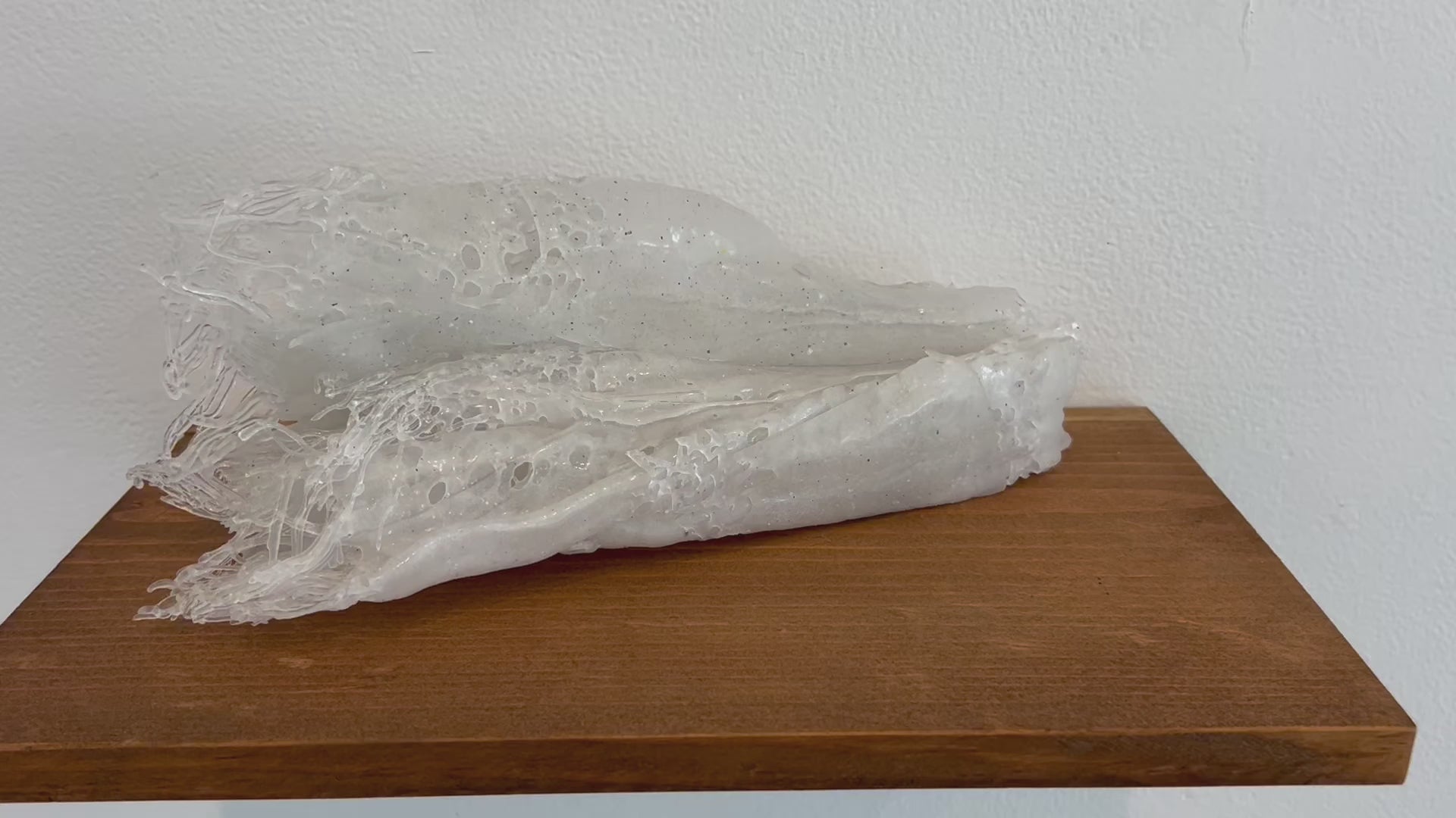 As with many of the broom forms in this collection, to achieve the texture of this sculpture I sifted glass powder onto kiln shelves and repeatedly fired them until the desired texture was achieved (the holes in the thin glass grow larger with each firing).