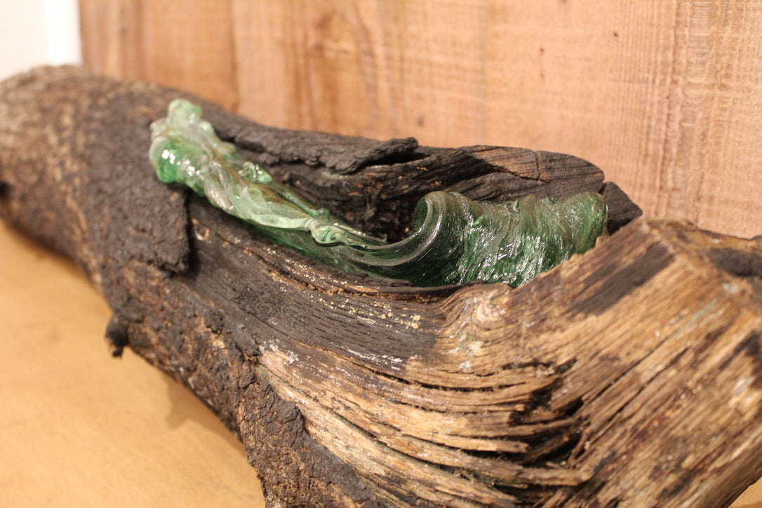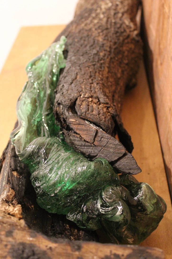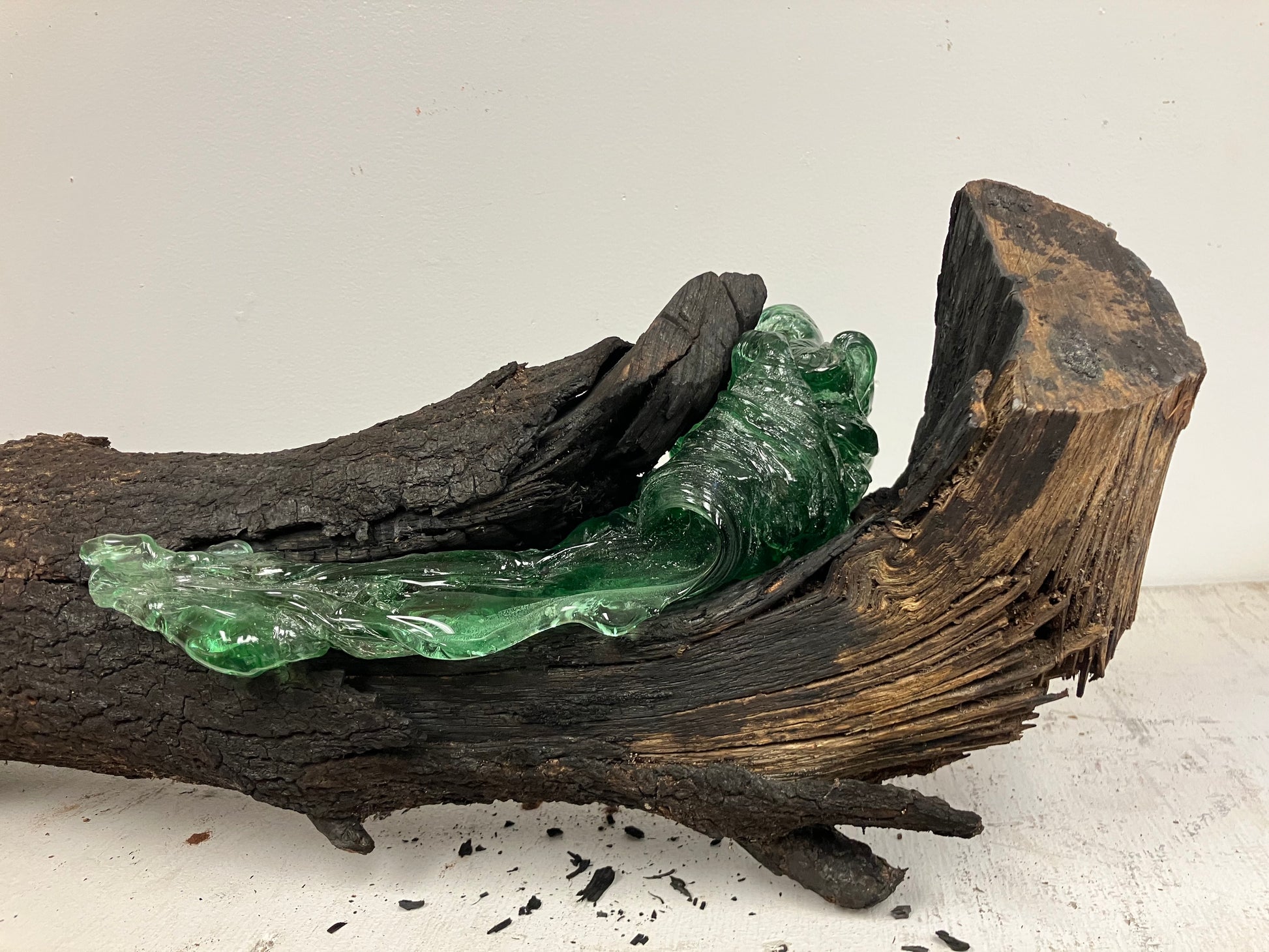 Ichor is part of a series of direct-cast works, an ongoing investigation of the relationship of preservation between nature and humans. The two materials, glass and plant, imprint one another in equal measure; this is both a sculpture and printmaking process. Concurrent with the development of my direct-casting process, I have been steeping in the scholarship of vegetal theory— the two practices now inform one another. Ichor, and others in the series, encourage us to consider, and reconsider through the lens of plant life, growth, excess, potential, survival. We live in a time of anthropocene crisis; humans alter the environment, the environment alters humans, and preservation is inherently mutual because we are nature.