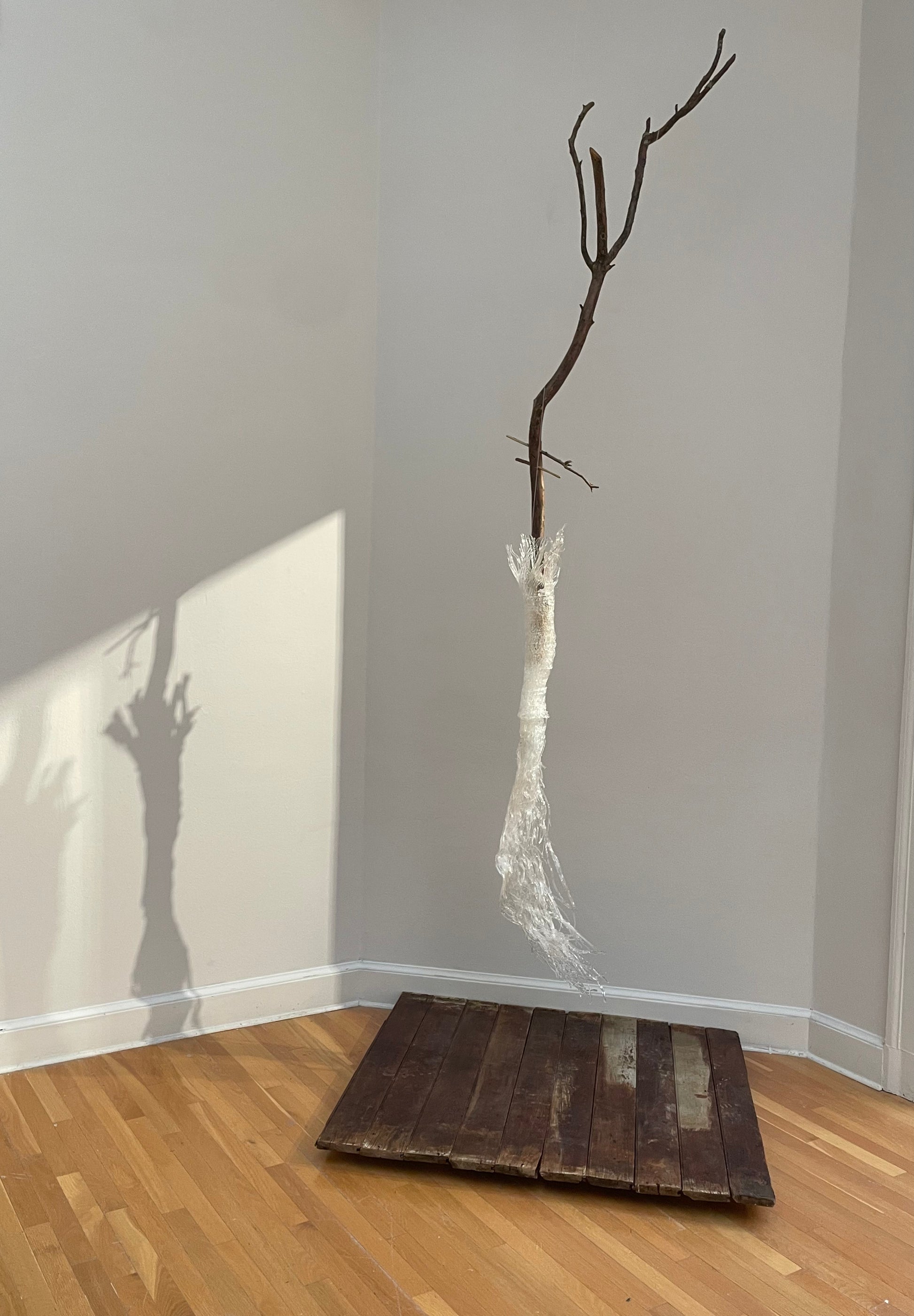 Brooms remind us that everyday tasks are ceremonial, that the sacred and the mundane are one in the same. Stewardship is an abstract western-civilization witch’s broom, a domestic body-sized vessel actively sweeping up broken bits of itself, engaged in self-stewardship.