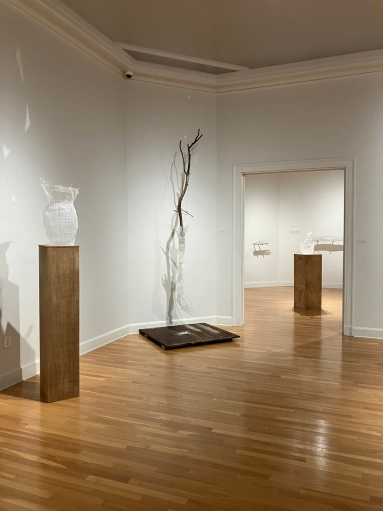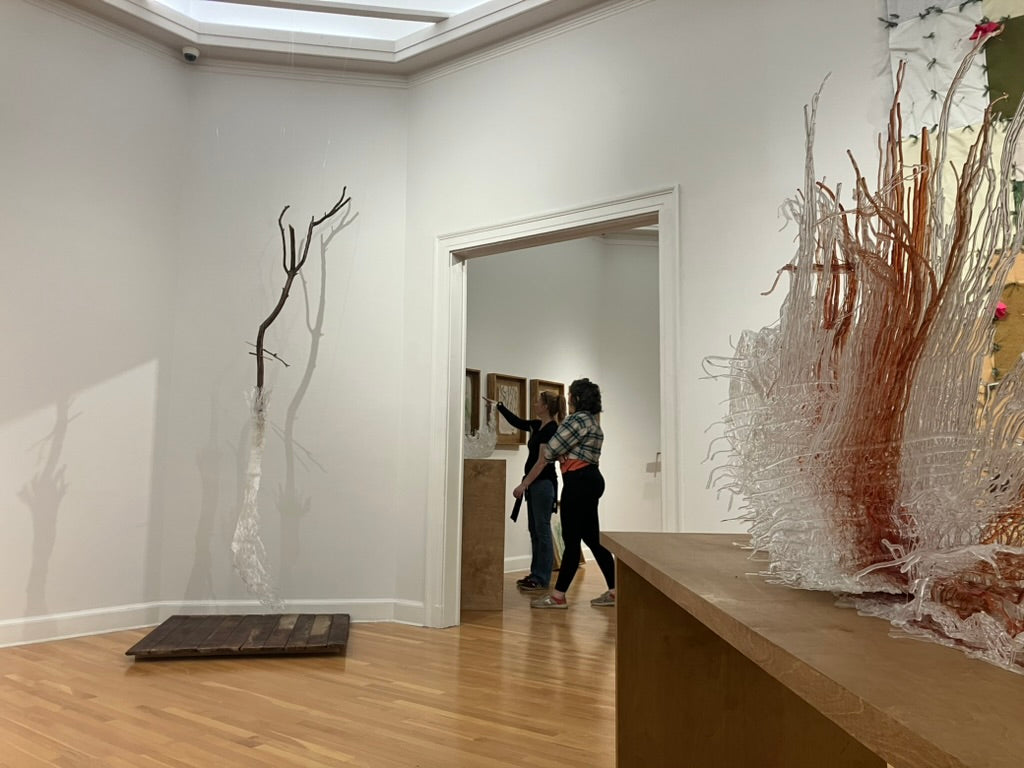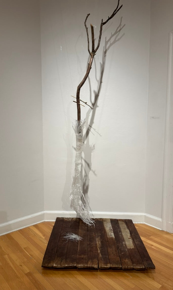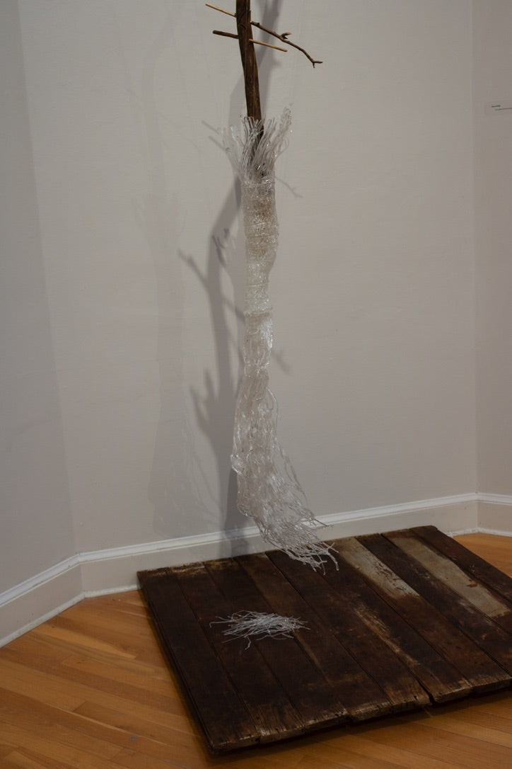 hand-pulled kiln formed glass cane, carved crepe myrtle branch